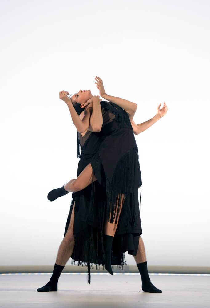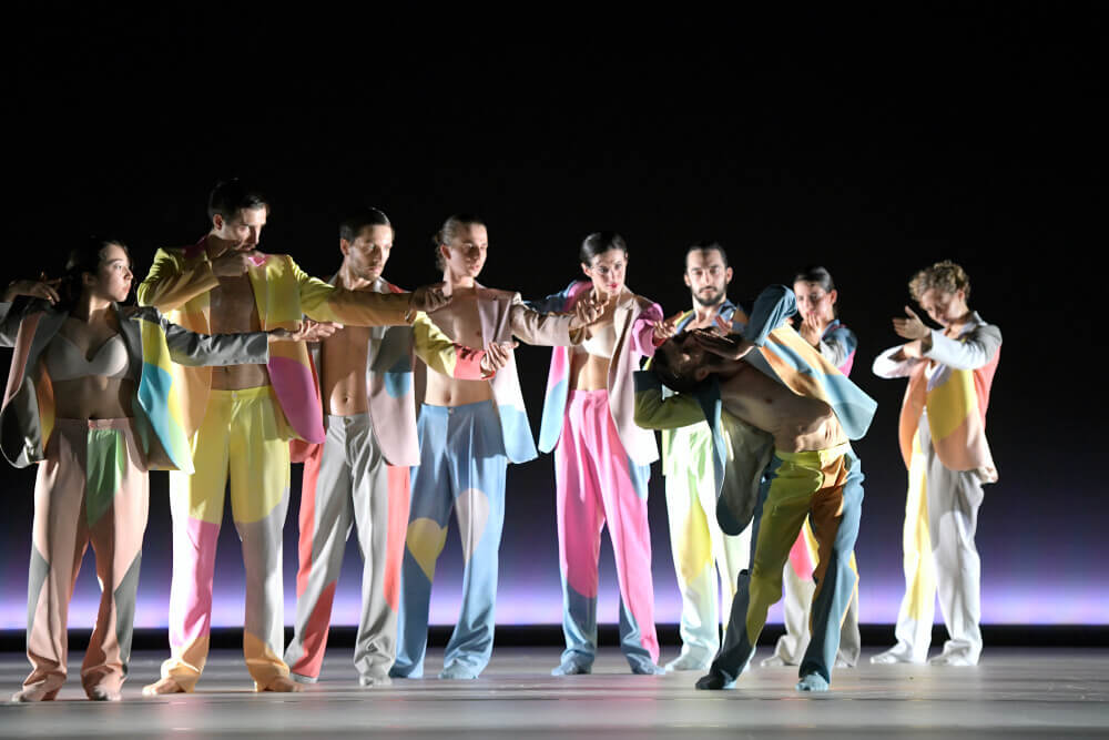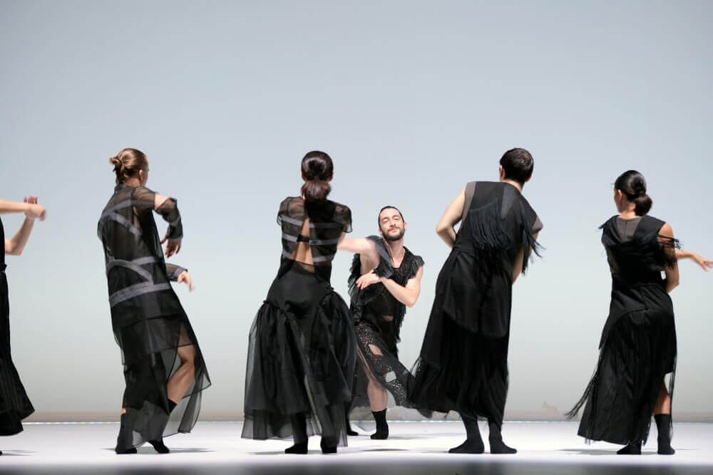 Raffiniert gelingt durch die Zweiteilung des Abends ein kulturhistorischer Bogen, in dem gestische und tänzerische Leitmotive signalisieren, wie extrovertiertes Sich-zur-Schau-stellen, Flirt und Annäherungen bis zum orgastischen Höhepunkt variieren und sich doch ähneln. Die Hand am Hinterkopf wie ein gezackter Kamm gockeln die Männer, animieren die Frauen mit spanischer Grandezza. Choreographie und Kostüme konterkarieren wiederum diese Rollenklischees, weil die Posen, von den fünf Tänzern und vier Tänzerinnen im ersten Teil nur in Kleidern, im zweiten in Anzügen getanzt, Genderabgrenzungen auflösen. Allerdings werden sie durch die mimische Expression immer wieder präsent, wodurch der Abend an ambivalenter Dichte gewinnt.“