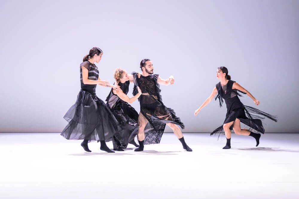 The division of the evening subtly succeeds in creating a cultural-historical arc in which gestural and dance leitmotifs signal how extroverted display of oneself and flirtatious approaches vary up to the orgasmic climax and yet are similar. The men prance with their hands on the back of their heads like a jagged comb, animate the women with Spanish grandeur. Choreography and costumes, in turn, thwart these role clichés, because the poses, danced by the five male and four female dancers only in dresses in the first part and in suits in the second part, dissolve gender boundaries. However, they are repeatedly present through the facial expressions, which gives the evening an ambivalent density.”